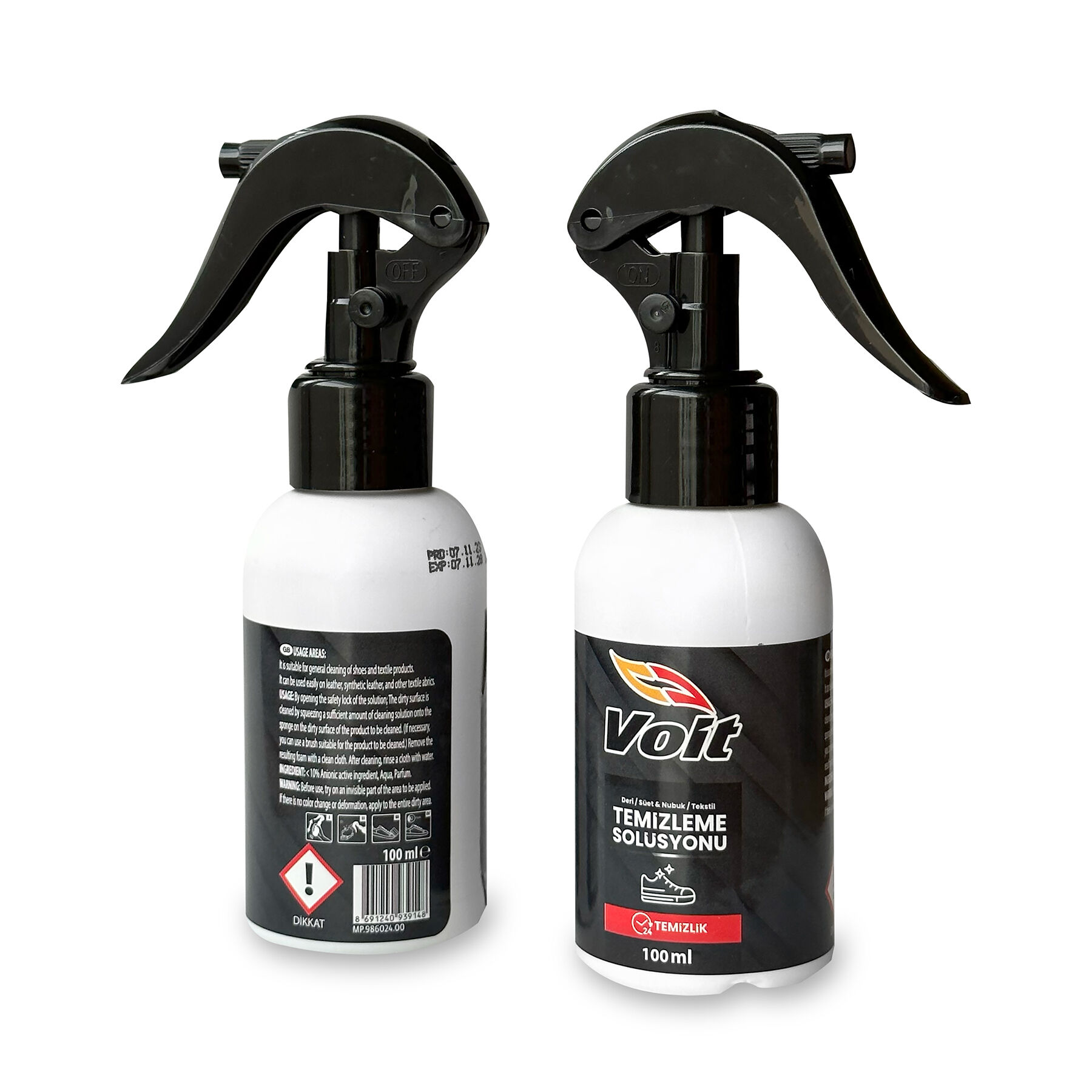 Yanıt: Voit Temizleme Solüsyonu 100 ml'lik kullanışlı bir sprey ambalajında sunulmaktadır.