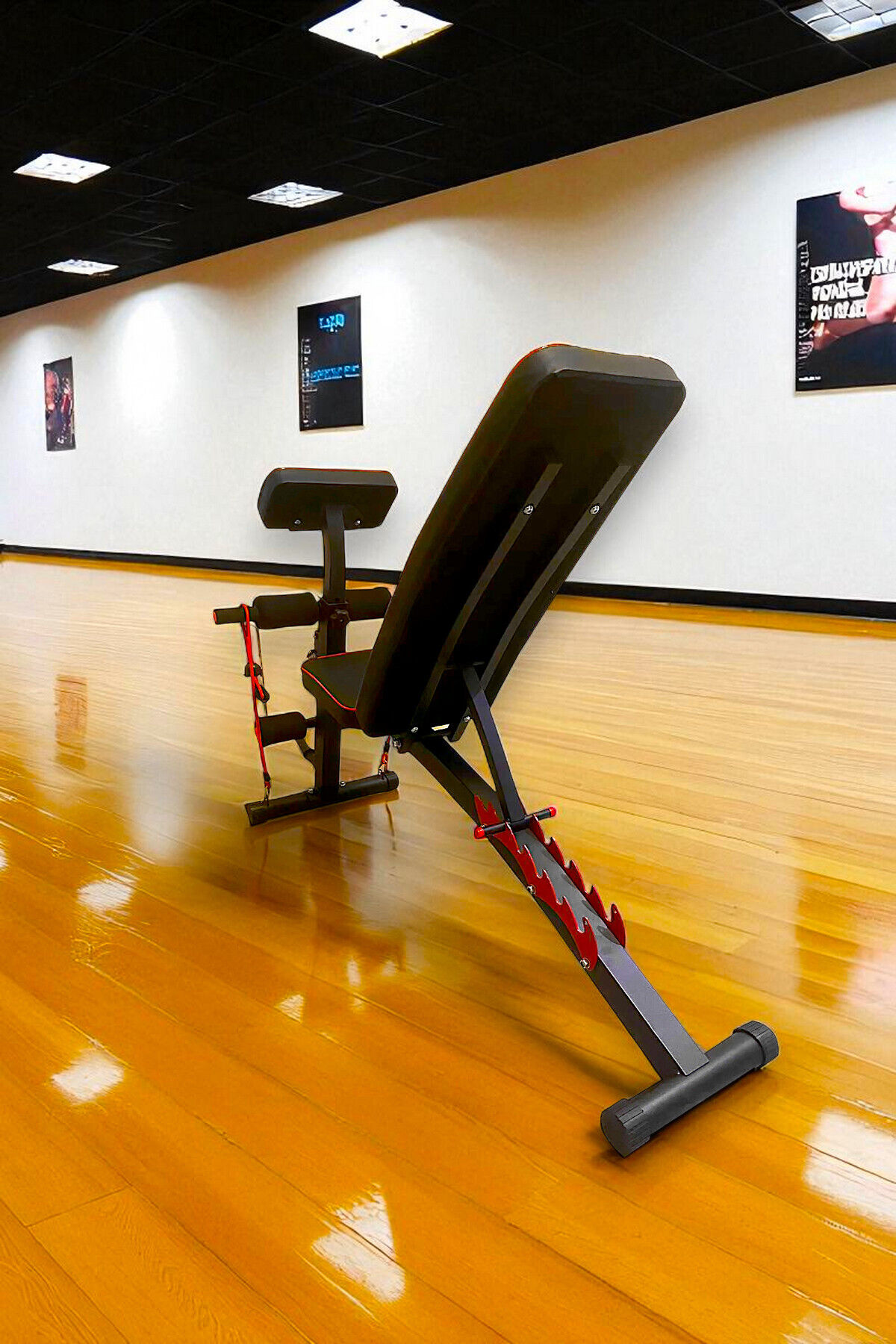 D208 Katlanabilir Incline Decline Ayarlanabilir Kol Dayamalı Sırt Açılı Lastik Kordlu Mekik ve Ağırlık Sehpası