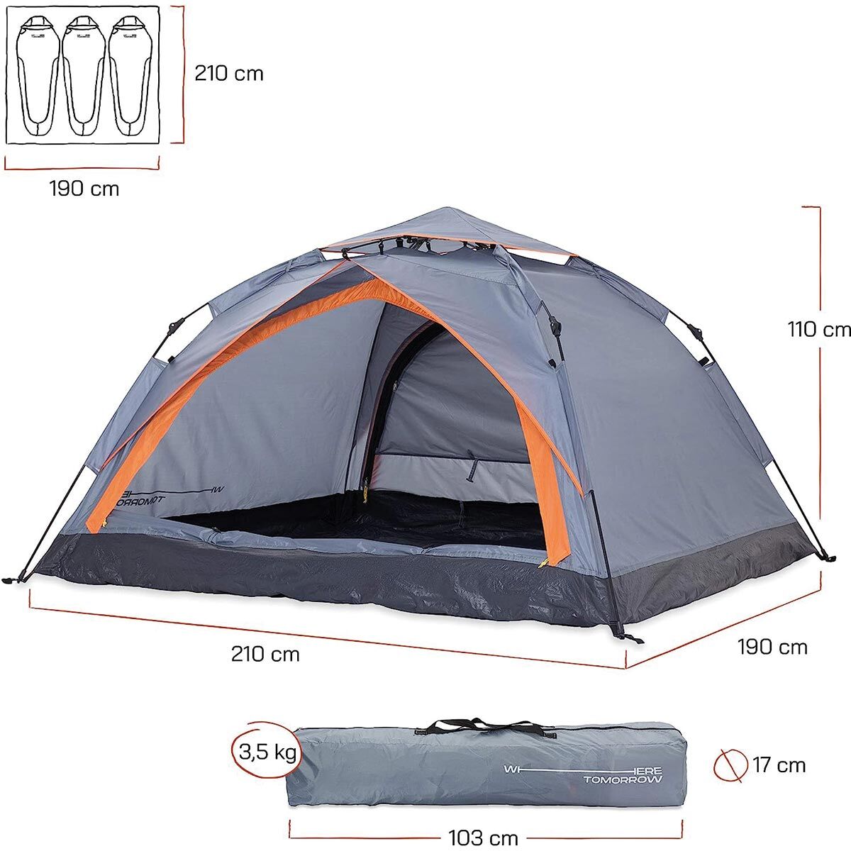 Where Tomorrow Doppel Otomatik Çadır 3 Kişilik Aile Çadırı Doppel ile Kamp, yürüyüş, geziler ve akla gelebilecek her türlü Outdoor aktivitesi için ideal. Montajı kolay, hafif ve sağlam. Marka: Where Tomorrow Model: Doppel Çadır Kurulumu: Otomatik kurulum En: 210 cm Boy: 190 cm Yükseklik: 110 cm Kapı Bilgisi: 1 kapı Bagaj: Bagaj Özelliği Bulunmamaktadır. Kapalı Ölçüsü: 14 x 102 cm Ağırlık: 3300g Kişi Sayısı: 3 Kişilik Oda Sayısı: 1 Oda Mevsim: 4 Mevsim Kumaş Tipi: 190T polyester PU2000mm Taban Kumaşı: 115G PE Pole: 8.5 mm Detaylar: Kurulum: Kapatma: İşte bu kadar!