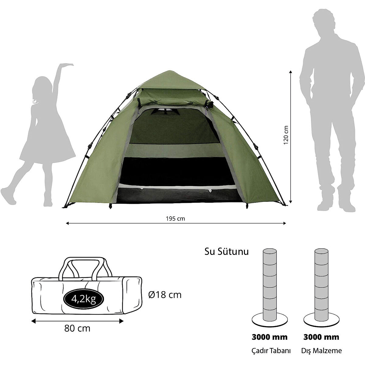 3 Kişilik Aile Çadırı Kuppel ile Kamp, yürüyüş, geziler ve akla gelebilecek her türlü Outdoor aktivitesi için ideal.