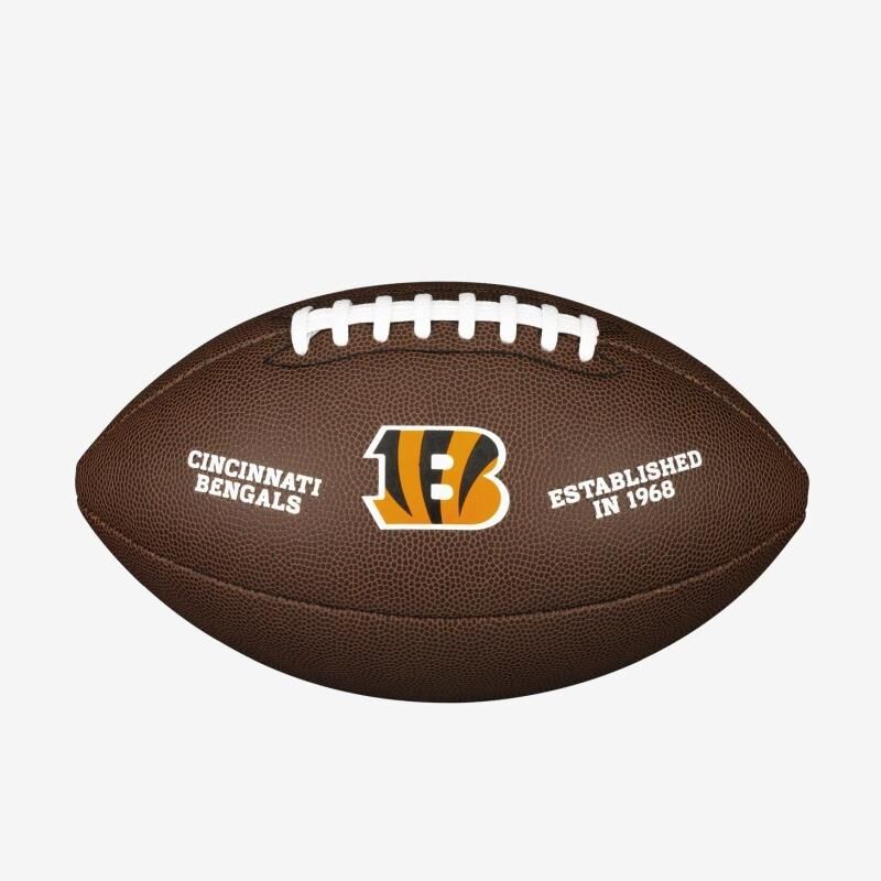 NFL Backyard Legend futbol topu, üst düzey NFL hissi için kompozit bir kaplamanın yanı sıra tutarlı bir kavrama ve arka bahçede gerekli dayanıklılık için çift bağcıklara sahiptir. 14 yaş ve üstü için ideal olan NFL Backyard Legend topu, takım adı ve tarihin yazılı olduğu bir panel üzerinde tuttuğunuz takımın kabartmalı logosunu içerir.