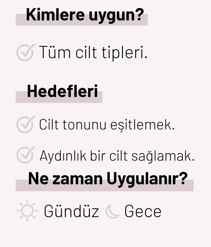 Sabahları cildinizi aydınlatmak ve korumak, akşamları ise cildinizin yenilenme sürecine destek olmak için kullanabilirsiniz.