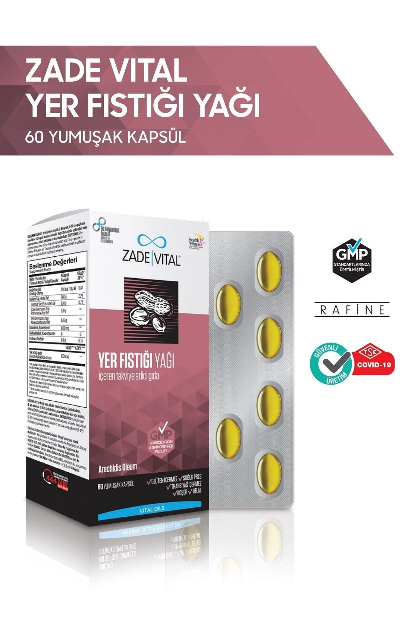 Zade Vital Fıstık Yağı 800 mg 60 Yumuşak Kapsül