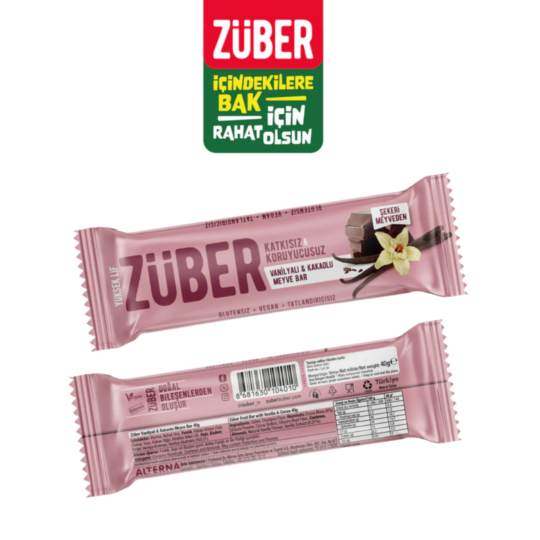 Hurma bazlı bir yapıyı kuruyemişlerle derinleştirip kakao ve vanilya çizgisinde tatlı bir profile taşıyan bar formunda bir meyve tatlısıdır.