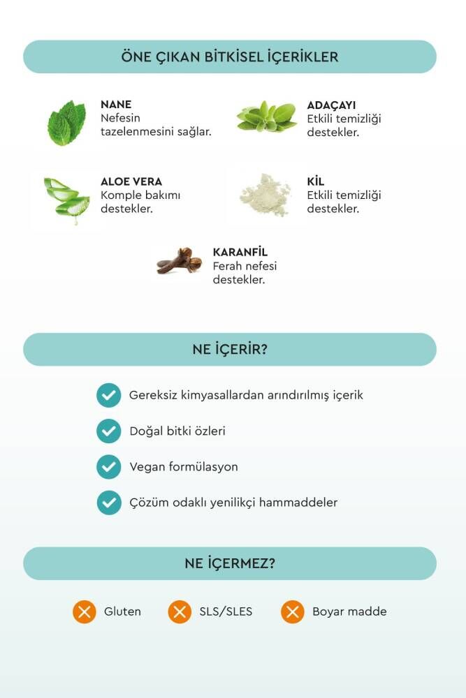 Dişlerinizi tam koruma altına alan formülüyle, diş eti sağlığınızı destekler ve diş çürümelerini önler; Günlük kullanım için ideal olan bu diş macunu, dişlerinizi temizlerken aynı zamanda diş etlerinize zarar vermez; 75 gram boyutuyla pratik kullanım sunar ve seyahatlerde de yanınızda taşıyabilirsiniz; Diş macununun yumuşak kıvamı, dişlerinizi nazikçe fırçalamanızı sağlar ve diş minesini korur;